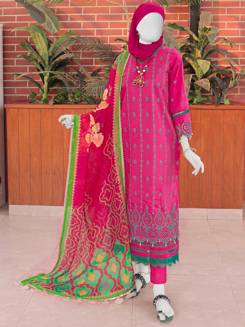 Pink Embroidered 3Pc Stitched Suit | PLS-24-7605