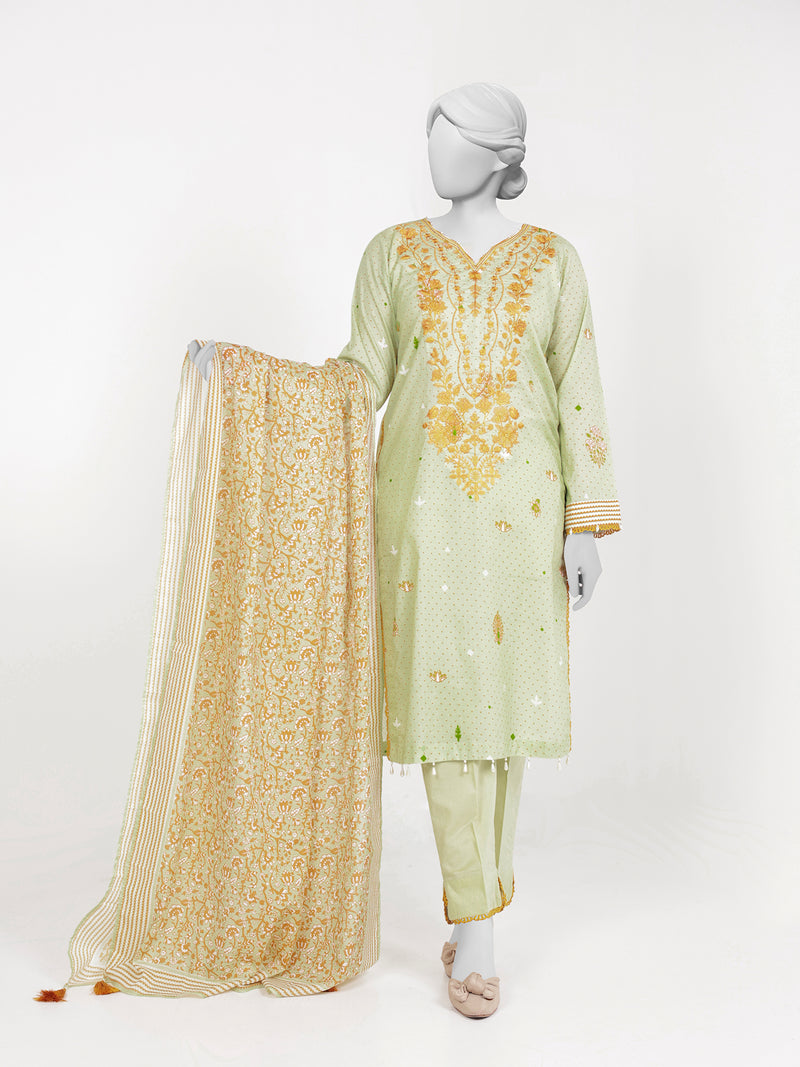 3Pc Stitched Lawn Embroidered Suit | PLSE251119