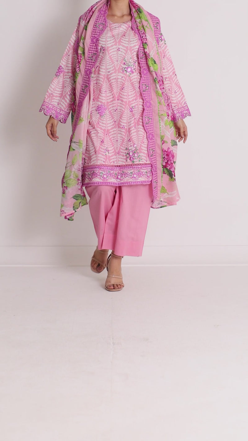 Digital Printed with Chikankari Embroidery on Shirt, Sleeves & Daman 3.0M