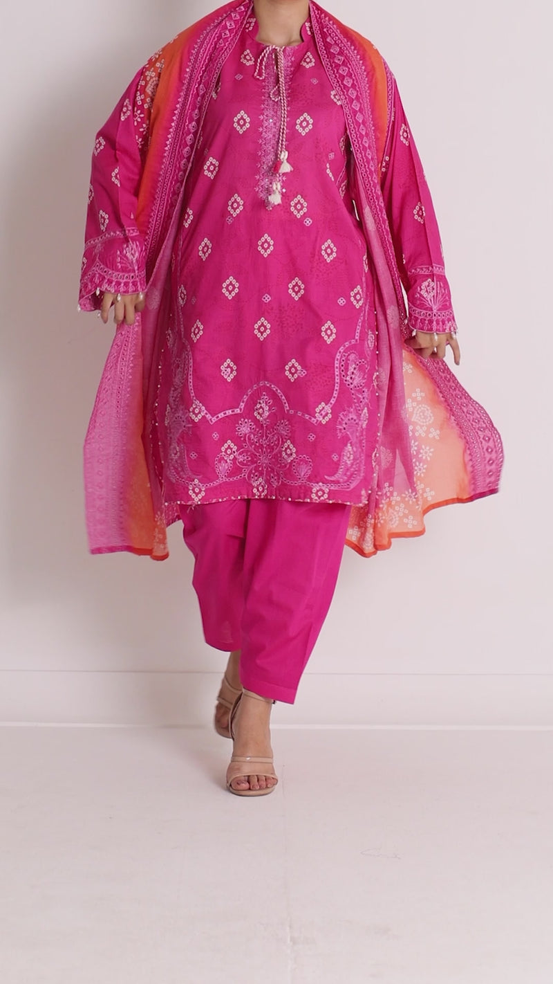 Digital Printed with Chikankari Embroidery on Shirt, Sleeves & Daman 3.0M