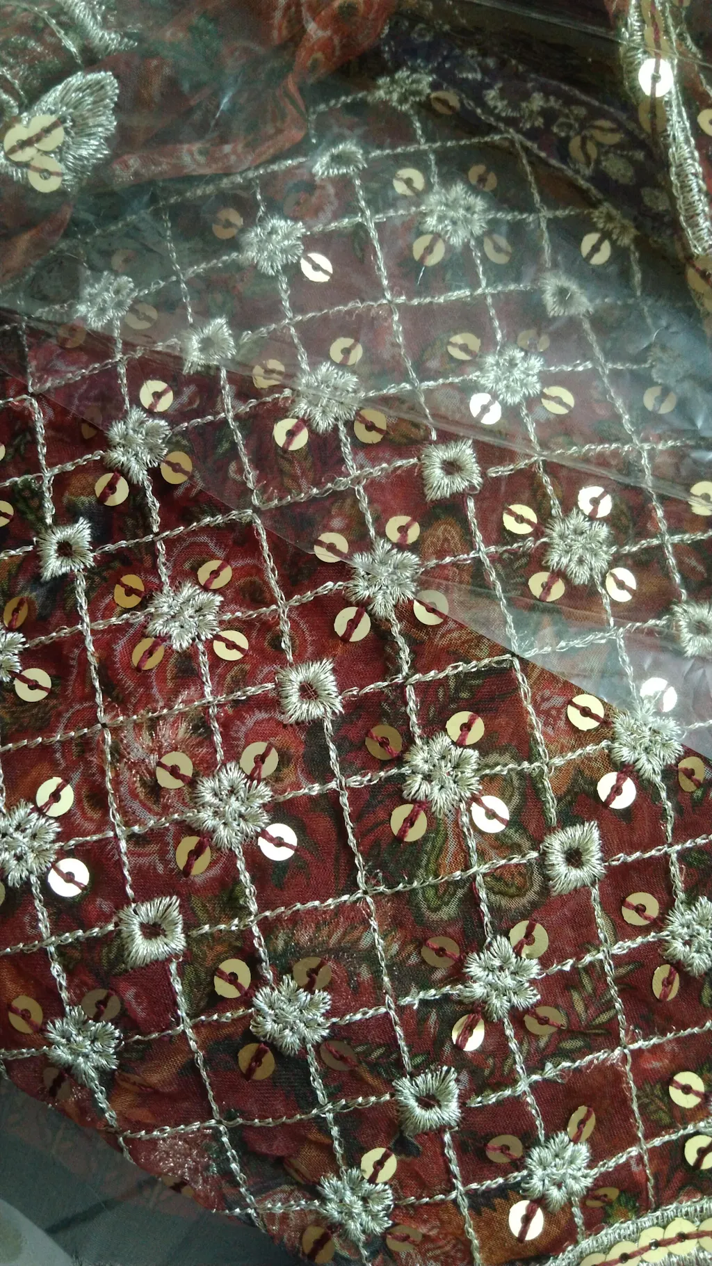 2.5 METER DUPATTA ON PRINTED ORGANZA WITH 4 SIDE EMBROIDERED BORDER