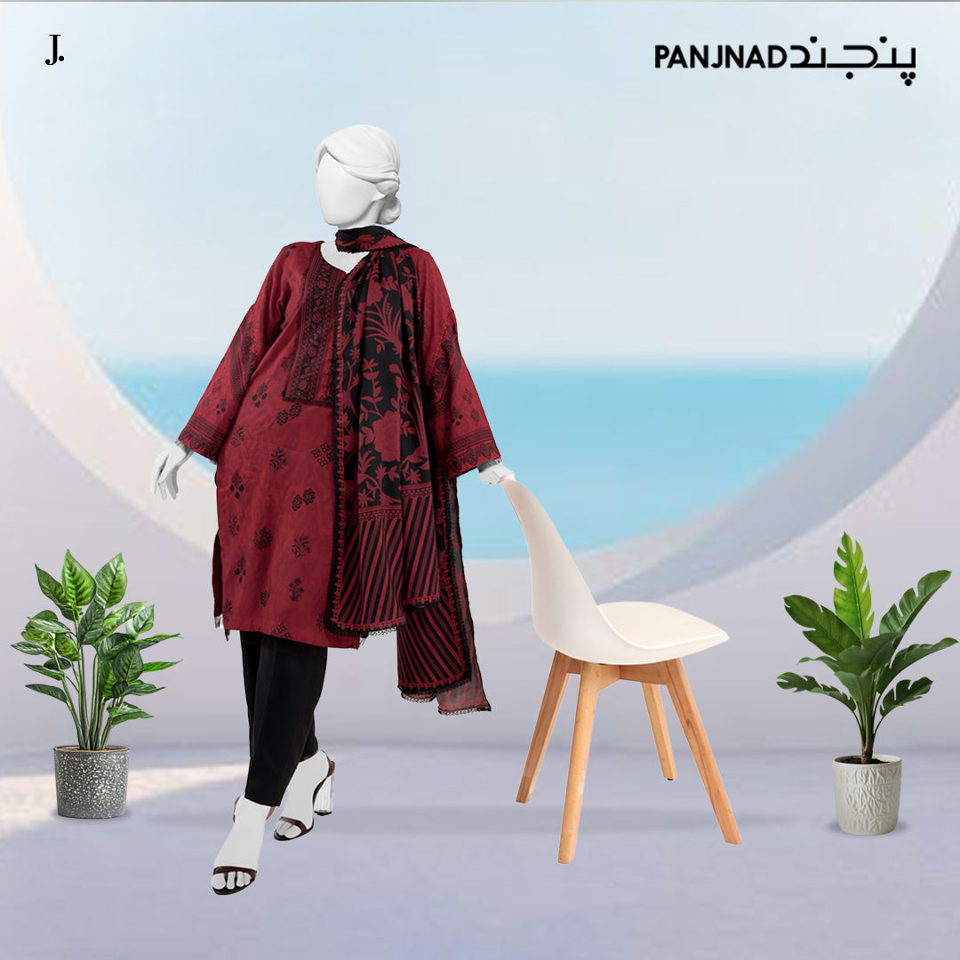Party Wear Embroidered 3Pc Unstitched Suit | PJ-PWU-240837